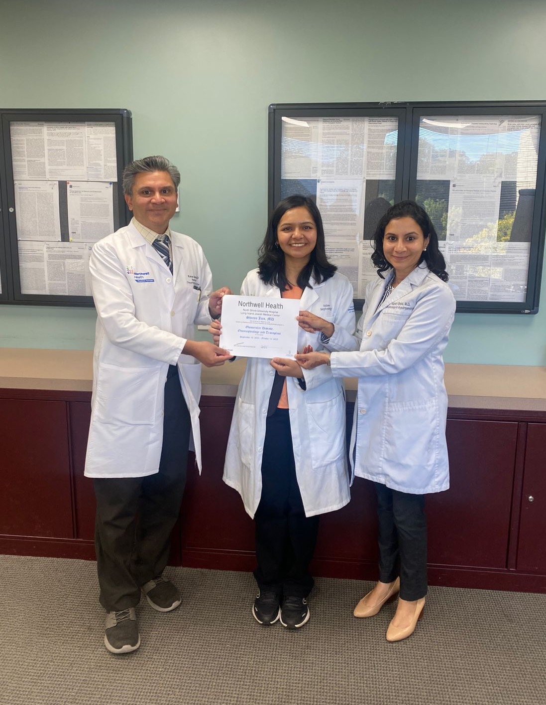 Dr. Shreya Jain, a nephrologist who recently completed her DM in Nephrology at Kasturba Medical College, Manipal, following her MD in Internal Medicine and MBBS from Vardhman Mahavir Medical College and Safdarjung Hospital, New Delhi. She completed her observership at Northwell Health, focusing on Onconephrology, Glomerular Diseases, and Kidney Transplantation under the mentorship of Dr. Kenar Jhaveri, Dr. Nupur Uppal, and their team.