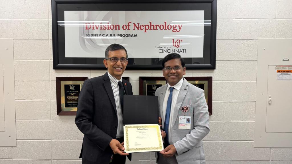• Dr. Anant Pilawan, Assistant Professor of Medicine at CMC Vellore, Tamil Nadu, and former faculty at AIIMS Nagpur and GMCH Nagpur, also completed his observership at the University of Cincinnati (Ohio), training in Renal Transplantation under Dr. Amit Govil and his team.
